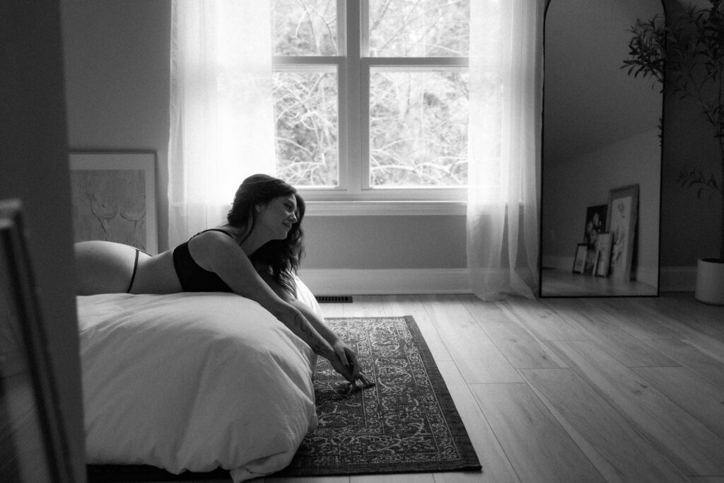 Boudoir photography is all about empowering women, and Olivia came to me for just that. She was looking for a subtly sexy and classy photoshoot to celebrate herself. This experience was purely for her – a chance to tap into and capture that confident, radiant side of herself.
