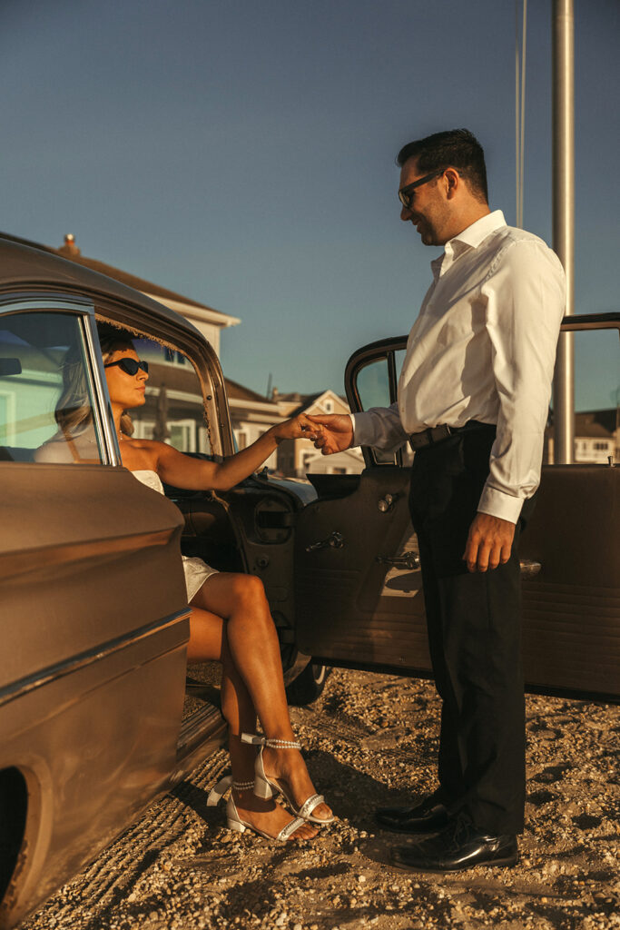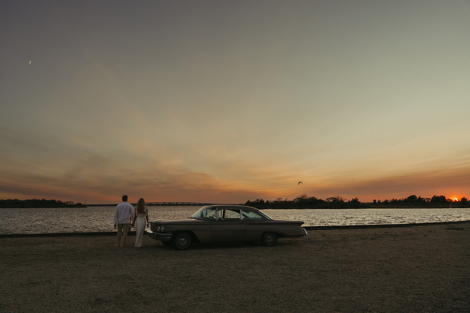 Jersey Shore Beach Engagement Photos | Amy & Joe’s Sunset Boat Ride & Classic Car Session
