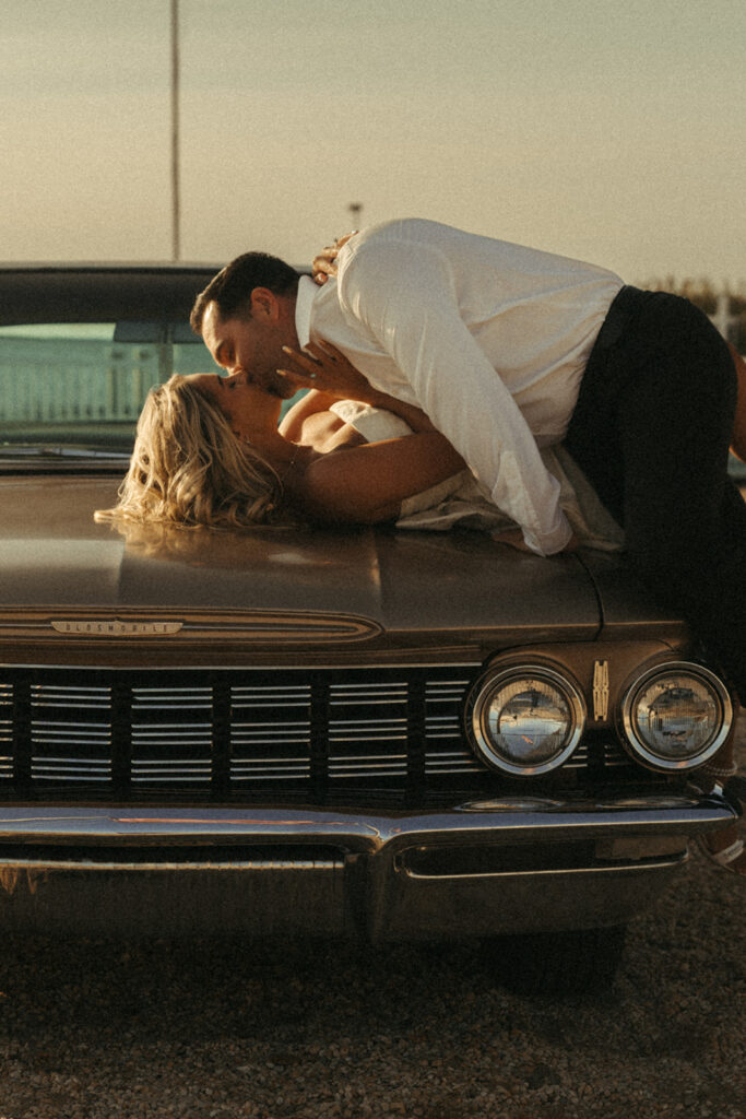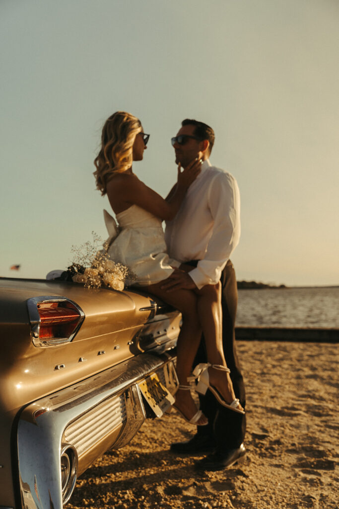 The session flowed perfectly with the sunset. We started just before the sun went down – when it was still bright and in your eyes, but made for some really great lighting in the vintage car photos. Then we transitioned to golden hour for the boat ride, and my favorite – blue hour for the photos on the beach.