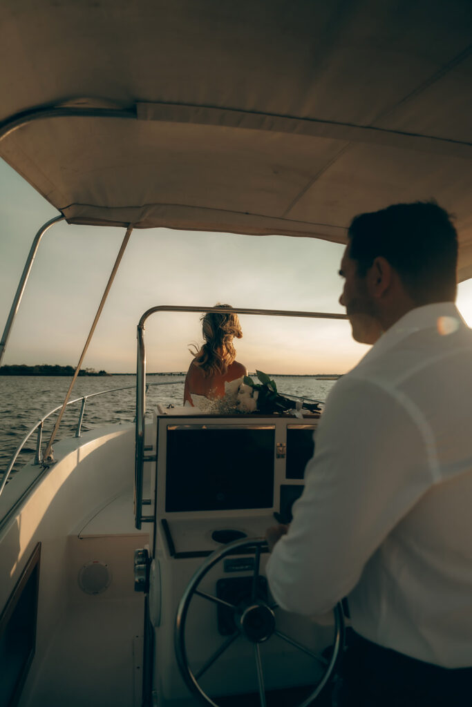 I love it when couples add personal touches to their sessions. Taking the boat ride with Amy and Joe was so much fun – I got to see them totally in their element! They rocked these black sunglasses and popped a bottle of champagne while cruising on the bay. These casual moments on the water created some of my favorite shots from their session, especially with that perfect golden hour lighting reflecting off the water.