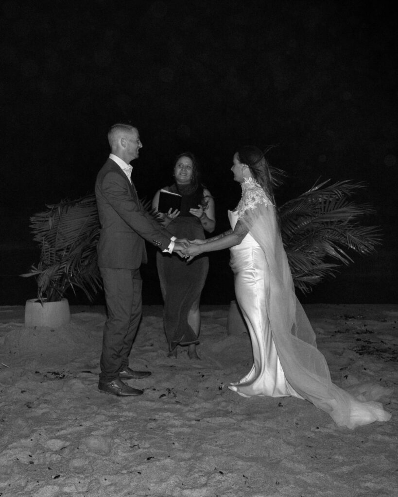 After the ceremony and cake cutting, Courtney had a quick dress change. Then, they ended up jumping into the ocean together for a more personal and romantic moment – the whole experience truly was a blast! It was everything you hoped for – they just wanted to enjoy each other and didn’t care how they looked or what anyone thought. It was just pure love and messy fun!