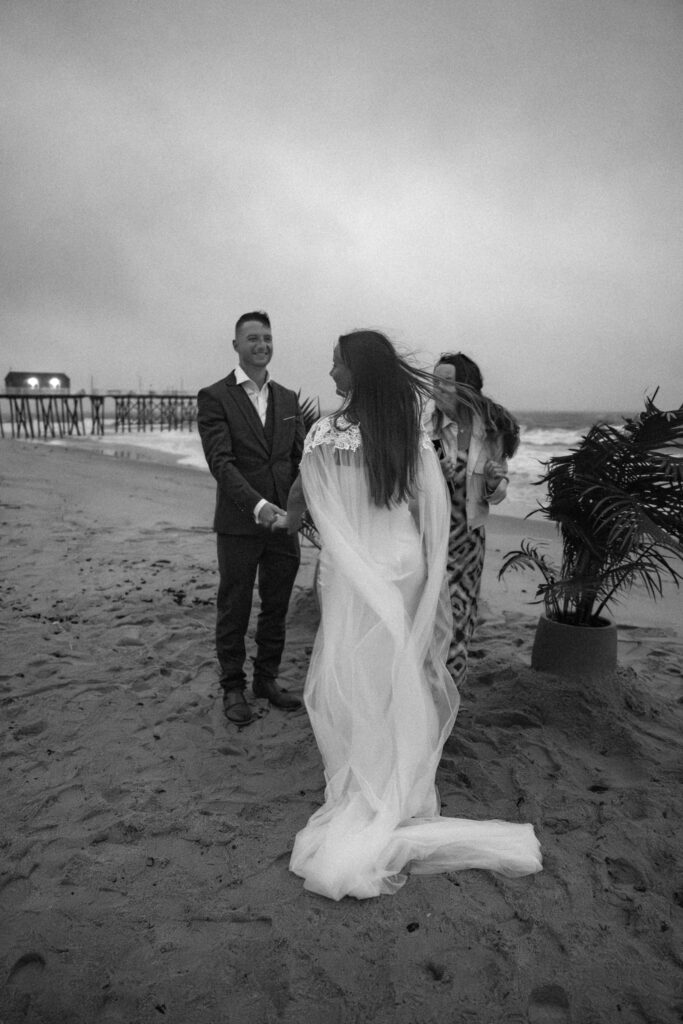 They had their ceremony and vows on the beach at sunrise… but oh my goodness, was it SOMETHING to remember! It was raining, cold, and so, so windy. The sun hadn’t come up yet, and even when it did, it was too cloudy, foggy, and misty to see. For many couples, this would be a complete disaster, but not for Courtney and Derek. Their reaction to this chaos was truly unforgettable.