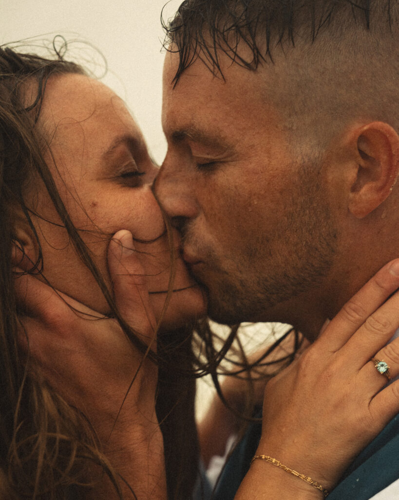 There’s one moment in particular that perfectly sums them up. The wind was picking up and it was raining like crazy. Nobody knew where to stand, Courtney was fixing her dress, and everyone was completely occupied with the mayhem around them. But Derek? He was just looking at Courtney with this huge smile on his face, completely unfazed by everything going on. I absolutely adore the rawness of this moment.