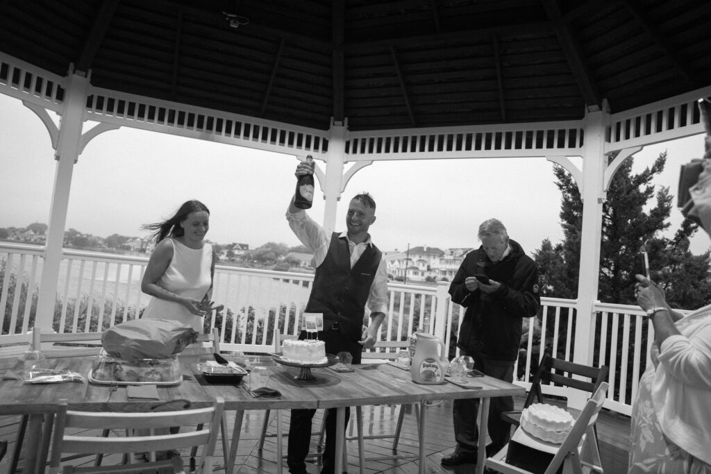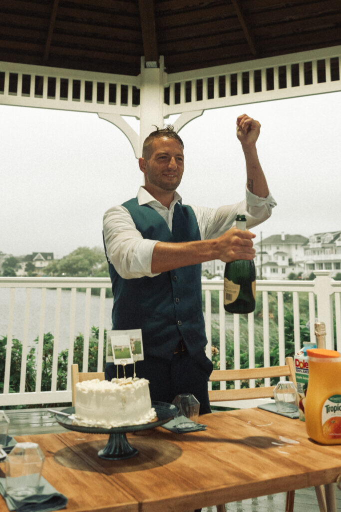 Under one of the gazebos, Courtney and Derek shared a sweet tradition with their families. They had a small heart-shaped cake with all white icing and “just married” written on it. To make it extra special, they topped it with a few Polaroids we had taken that day. Of course, they also popped some champagne bottles – always a fun thing to see!