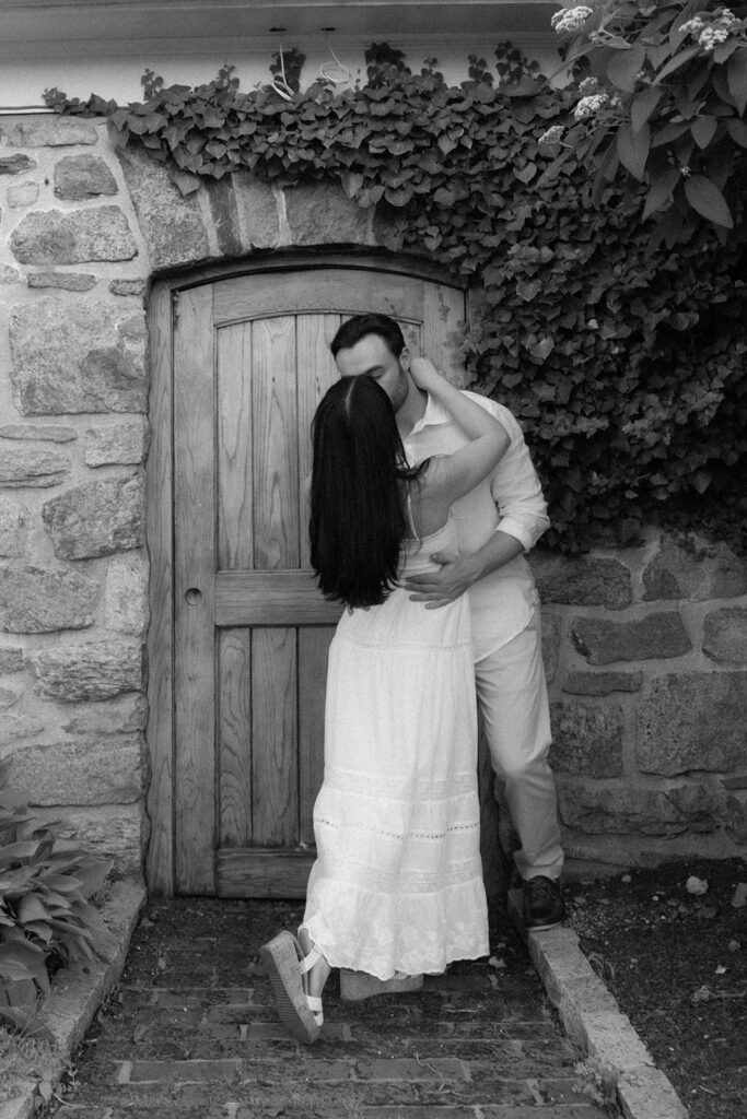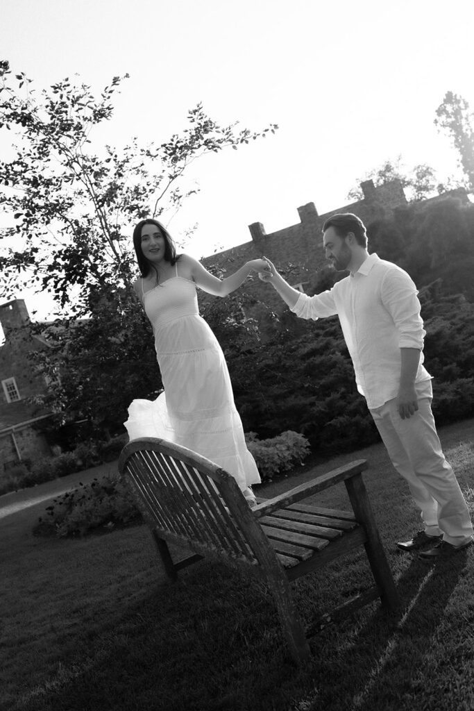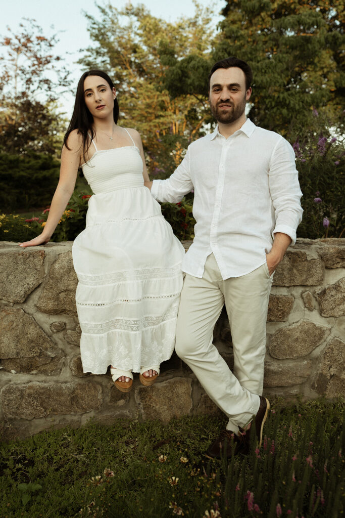 When couples are deciding where to capture their special moments, the location they choose is almost always meaningful to them, which makes the session that much more special. Alex and Brandon chose to have their engagement photos at the same venue as their wedding – Fiddlers Elbow Country Club in Bedminster, NJ. The grounds are absolutely breathtaking. It feels like you’ve been transported to Europe with the stone buildings and well-kept shrubbery. The entire aesthetic felt very old money, timeless, and elevated.