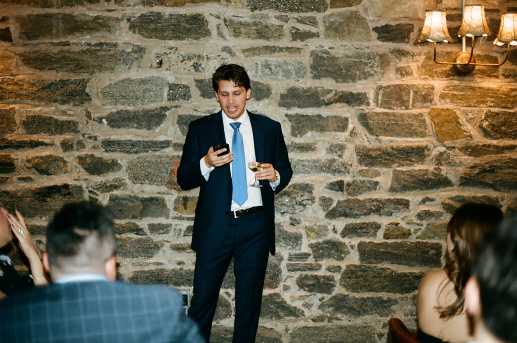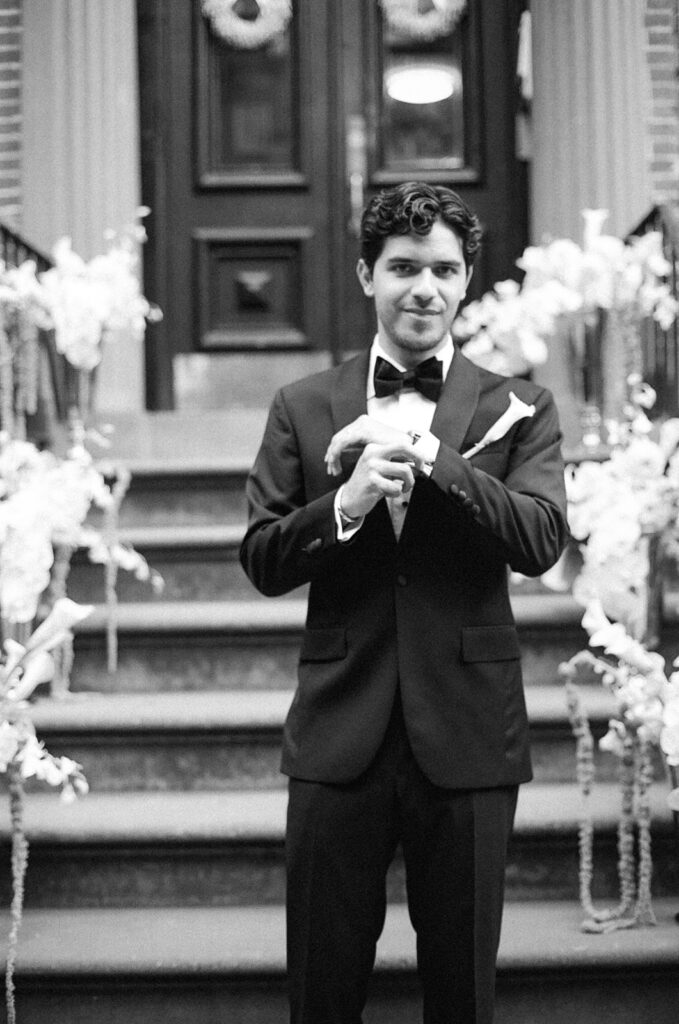 The New York-style wedding they envisioned was the perfect opportunity for film photography. Film photos don’t just give that nostalgic feeling – they add a completely different vibe to the way moments are captured. When you’re working with a limited roll of film, each photo feels 100 times more special. Even the imperfect shots have this unique quality that’s full of life and emotion. I can’t tell you how many times the unexpected photos end up being the best shots of the day.