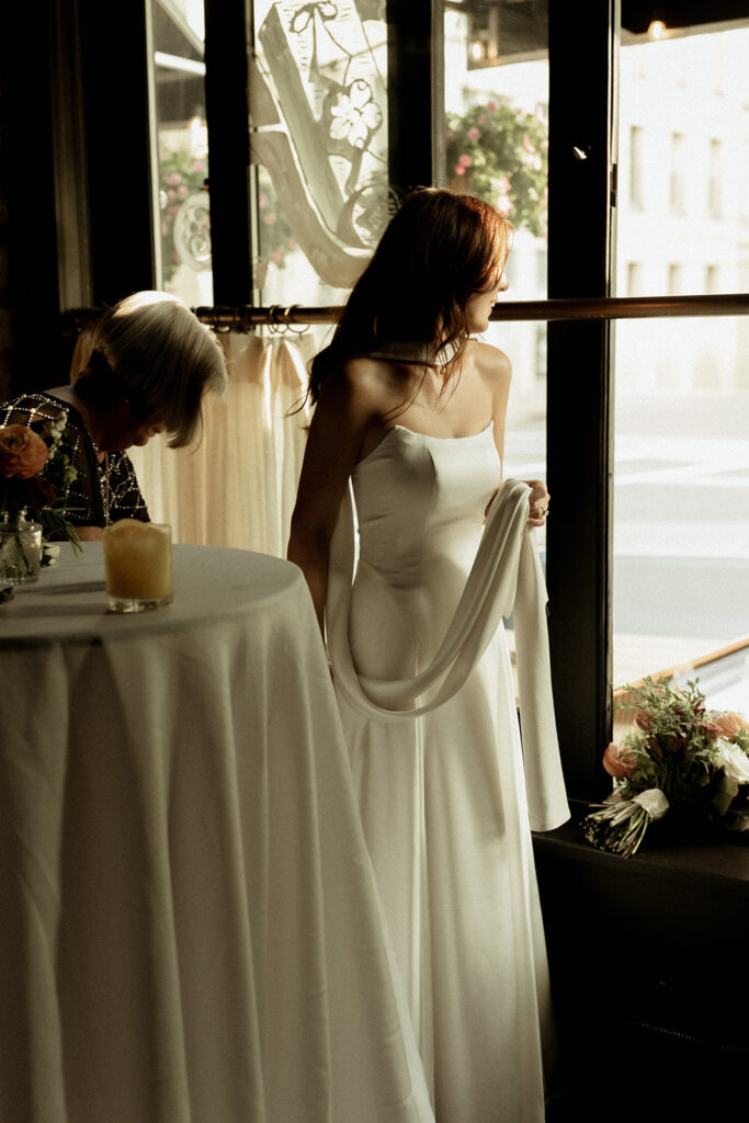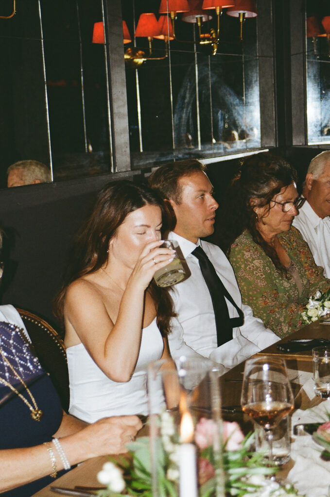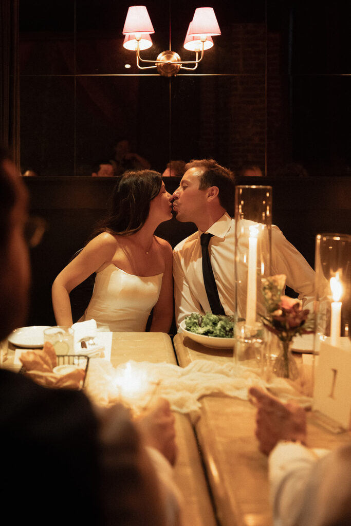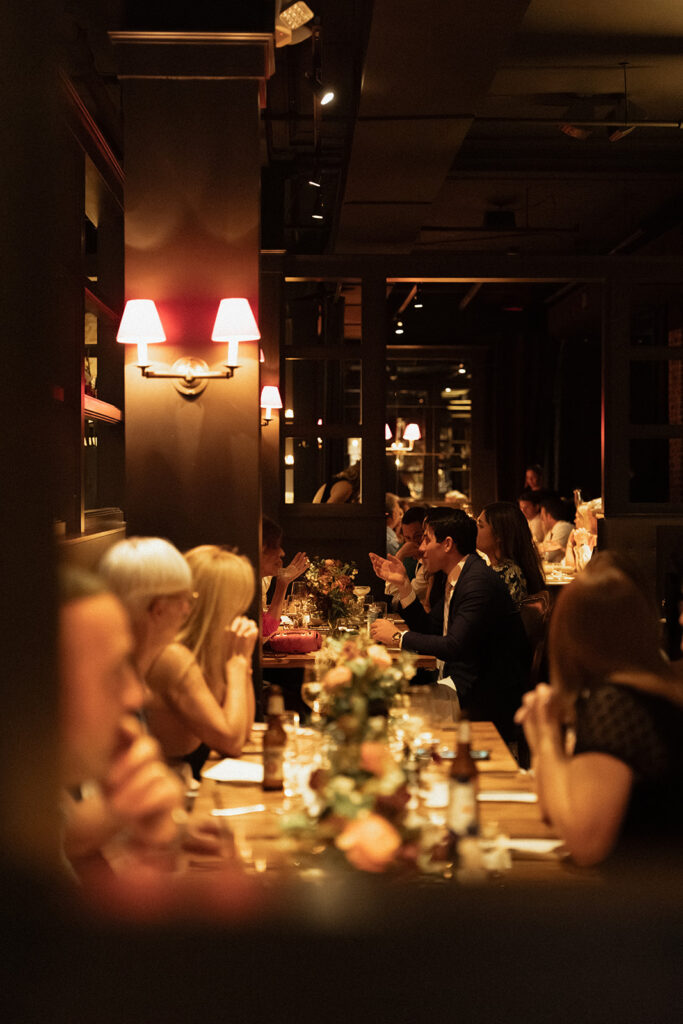 Though Christian and Danielle had a traditional wedding ceremony, they opted for a more nontraditional reception—a candlelit, dinner-only celebration with their guests. Pascal and Sabine is a modern brasserie with a dark, moody atmosphere, perfect for a candlelit dinner meant for deep conversations and personal connection. I loved capturing photos of the guests interacting with each other as well as the cake cutting. It was truly a laid-back celebration filled with love, simplicity, and kind souls. I truly love more intimate experiences like this because the photos of the guests enjoying themselves are invaluable. It’s more than just a wedding—it’s a shared moment that everyone will remember forever.