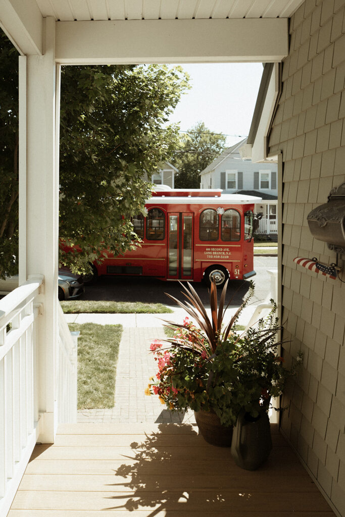 The couple started their morning separately, each getting prepared for the day ahead. Danielle got ready at their home surrounded by her family and bridesmaids. I captured so many intimate moments between the women—ones they’ll be able to look back on and remember the very emotions they were feeling. The moments with her mom were so incredibly sweet. Her friends were all filming her reaction, so supportive of each other, and I truly loved witnessing the love that filled the room. After everyone was ready, we all hopped on the iconic red Asbury Park Trolley and headed to the church to get Danielle married!