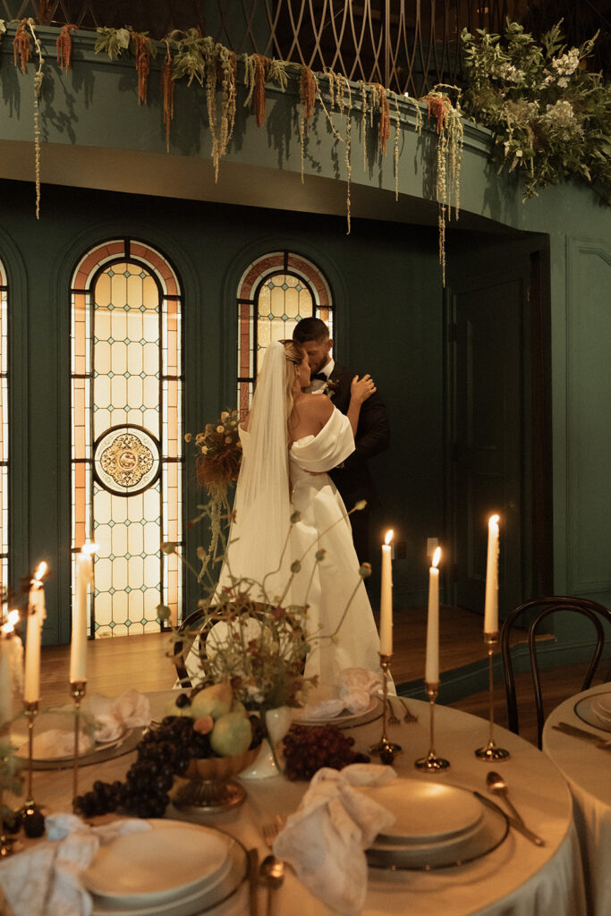 When Alexandria from Everlasting Events reached out to me with the idea, I was thrilled. We both loved whimsical florals and definitely wanted to incorporate candles into the mix. From there, we came up with the concept together and booked all of the other talented vendors to bring our vision to life. We wanted this to reflect a candlelit intimate wedding in the city with a mix of both modern and vintage elements.