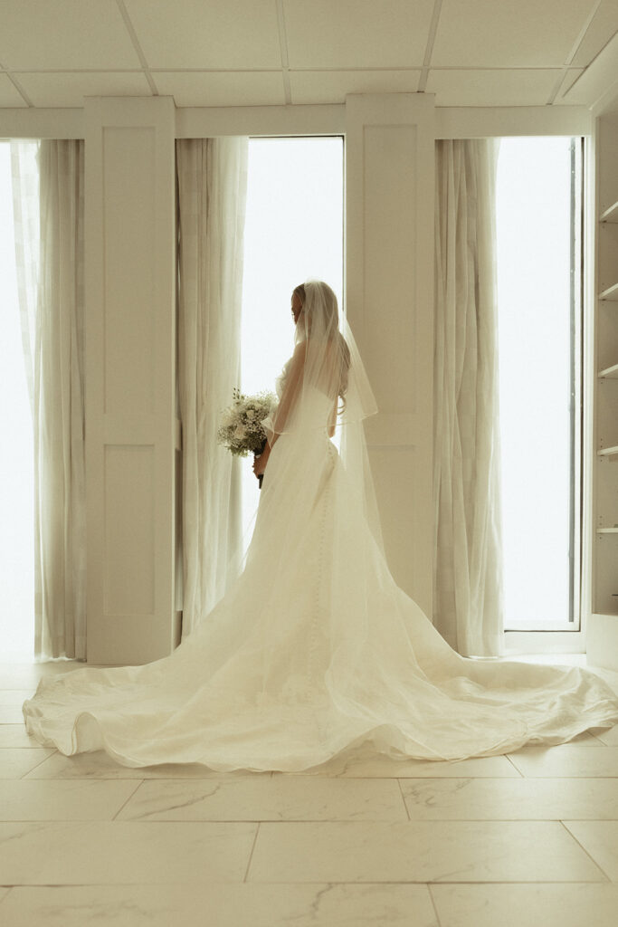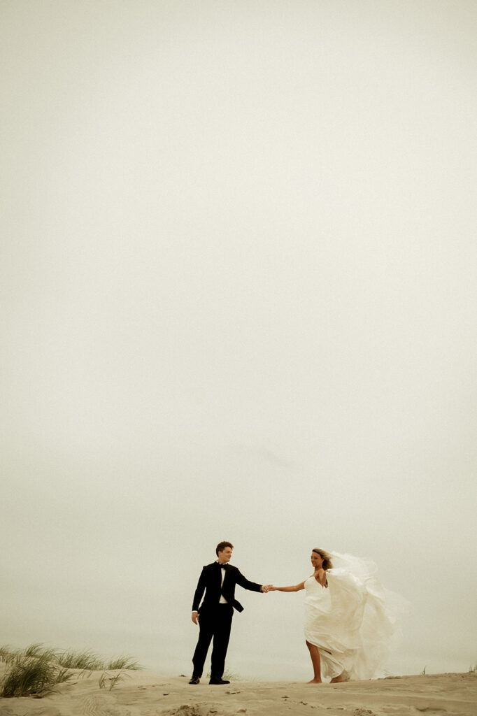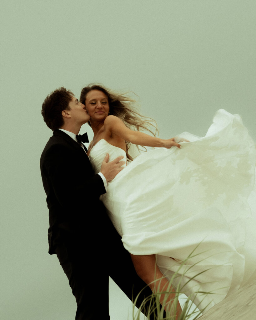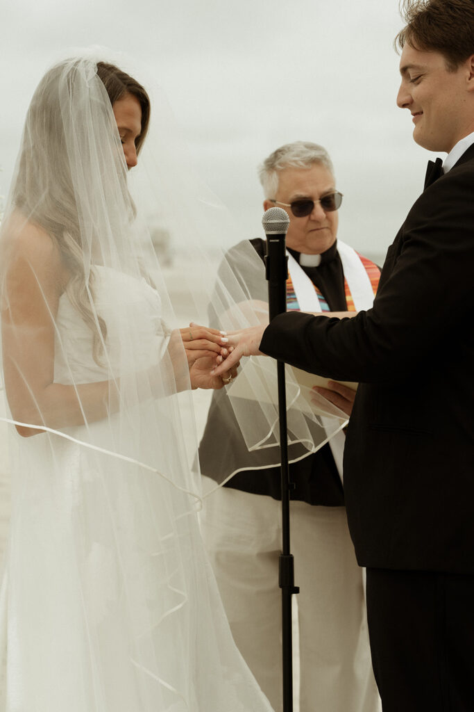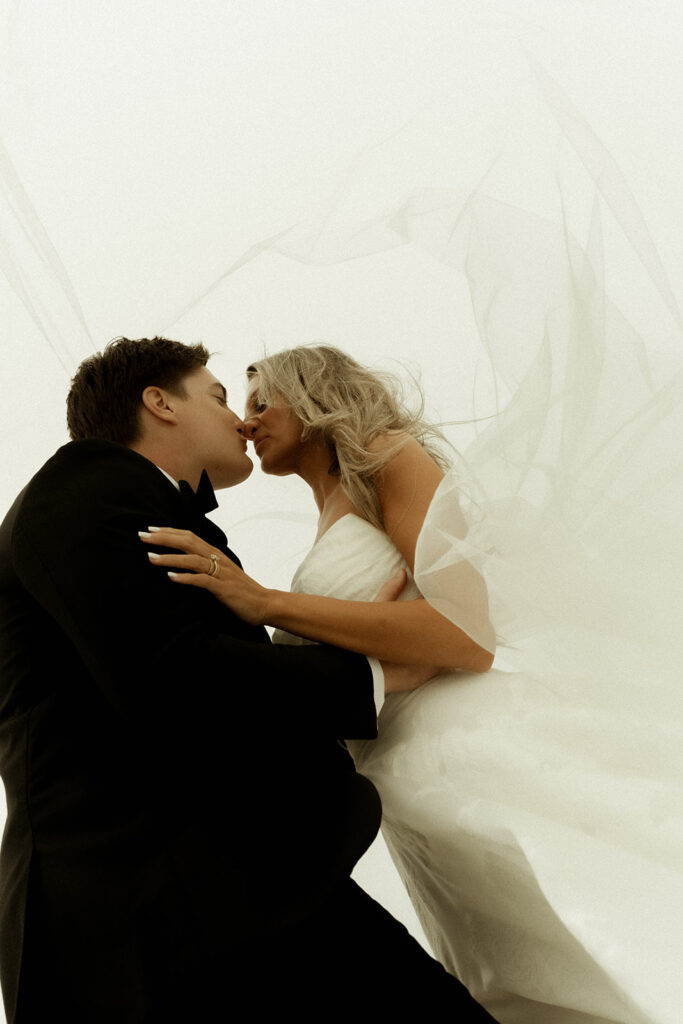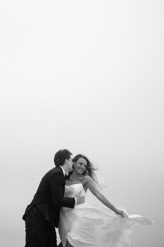 After the ceremony, we snuck away to take some bride and groom photos. We started on the beach, where it was still very windy, so Jordan’s dress and veil looked so stunning and flowy in the wind. Her veil actually kept blowing in Nick’s face, so we intentionally put the veil on his face for a funny photo. I love moments like this with couples because even though it’s not a traditional photo we planned for, it will be a memory they’ll look back on and smile.