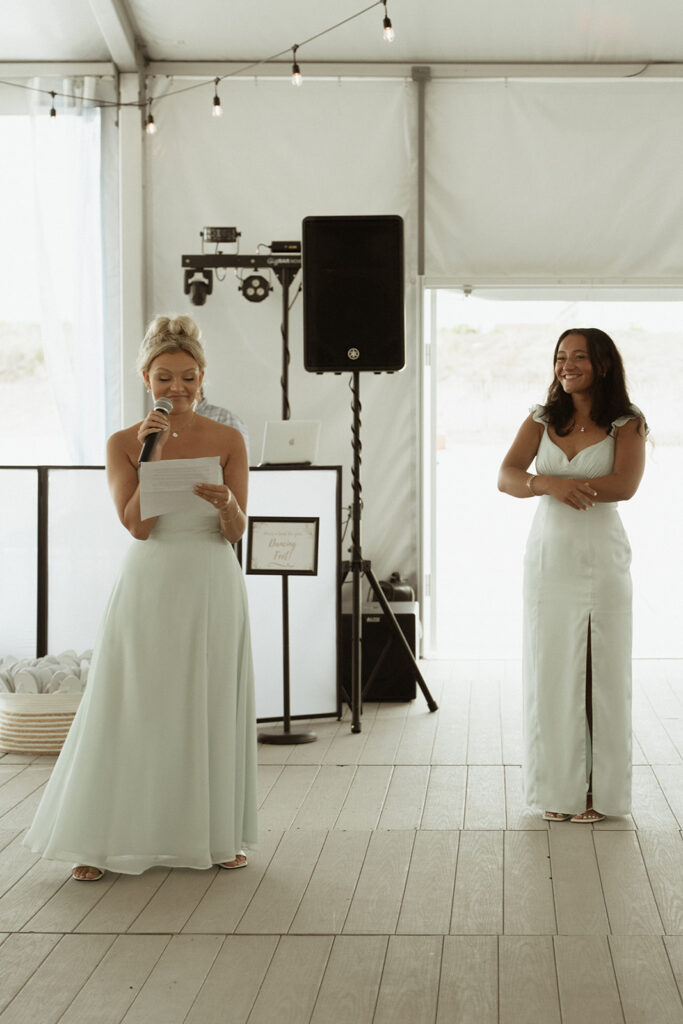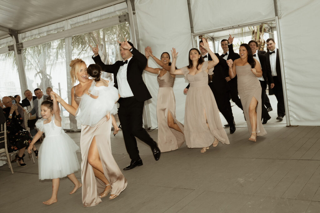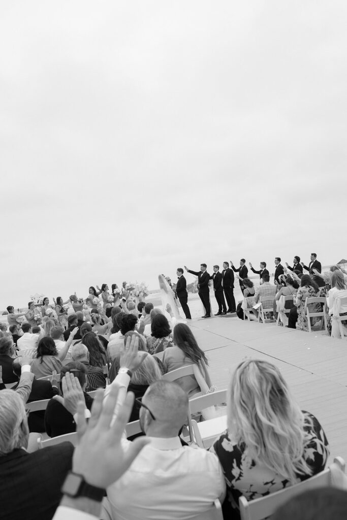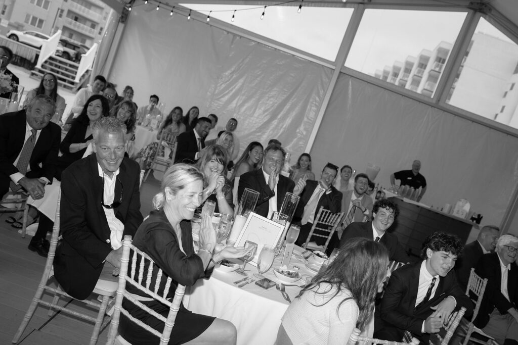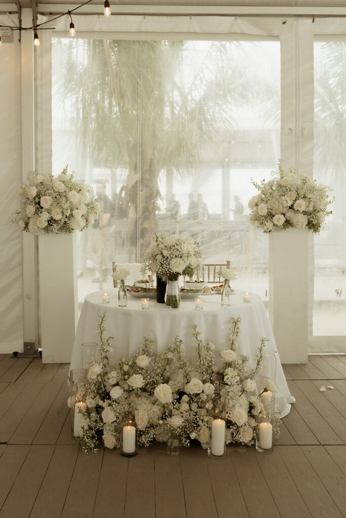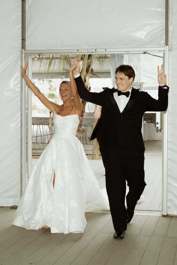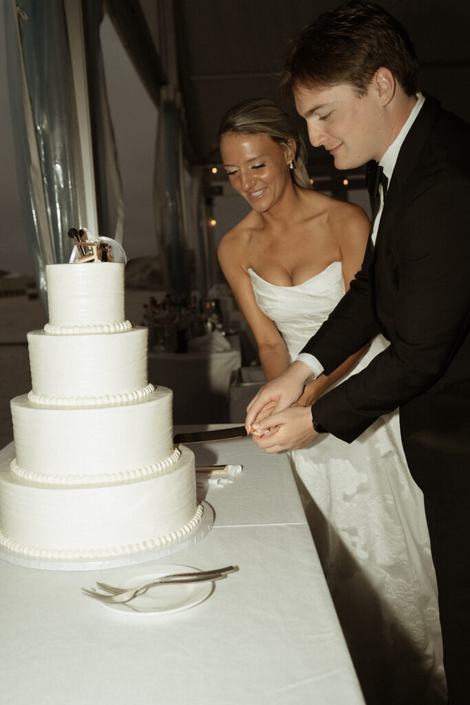 The reception was absolutely stunning and perfectly matched the elevated coastal wedding vibe they were going for. They had all white decor—from table linens to floral arrangements—with candles lining the tables. They had everything you could expect and more: grand entrances, speeches, dancing, cake cutting, and so much fun. They created so many core memories that their families will remember forever.