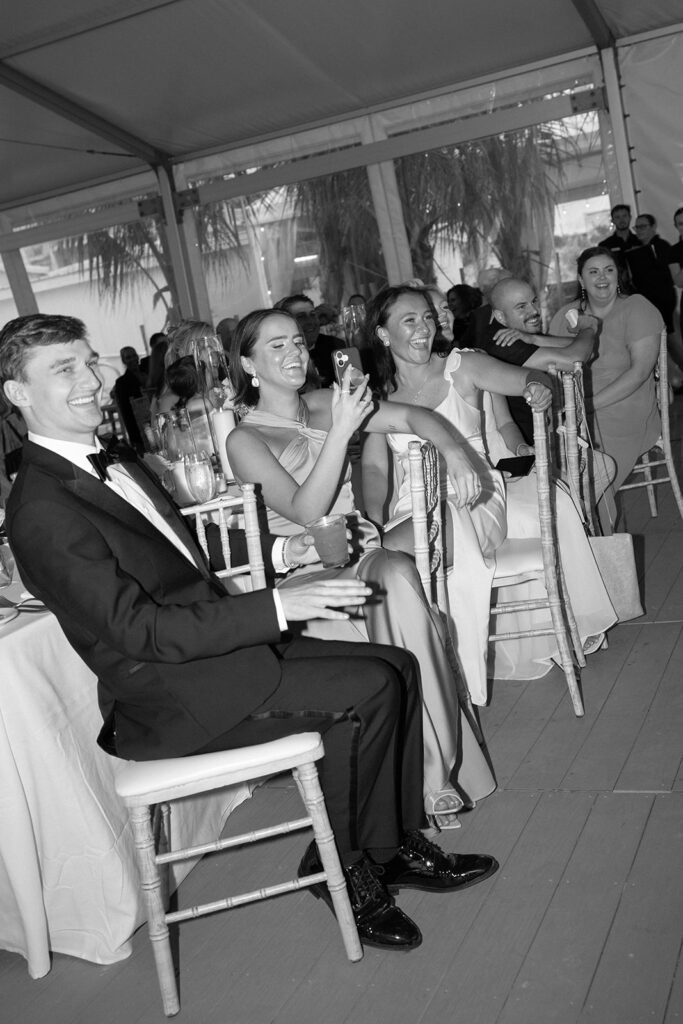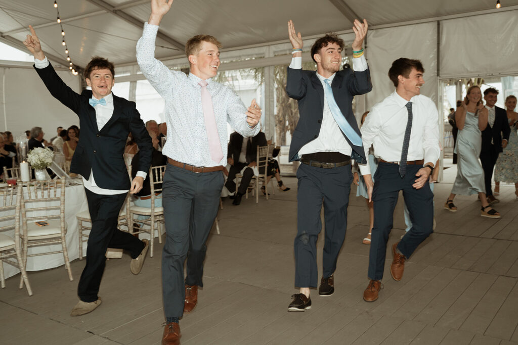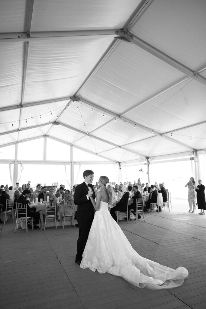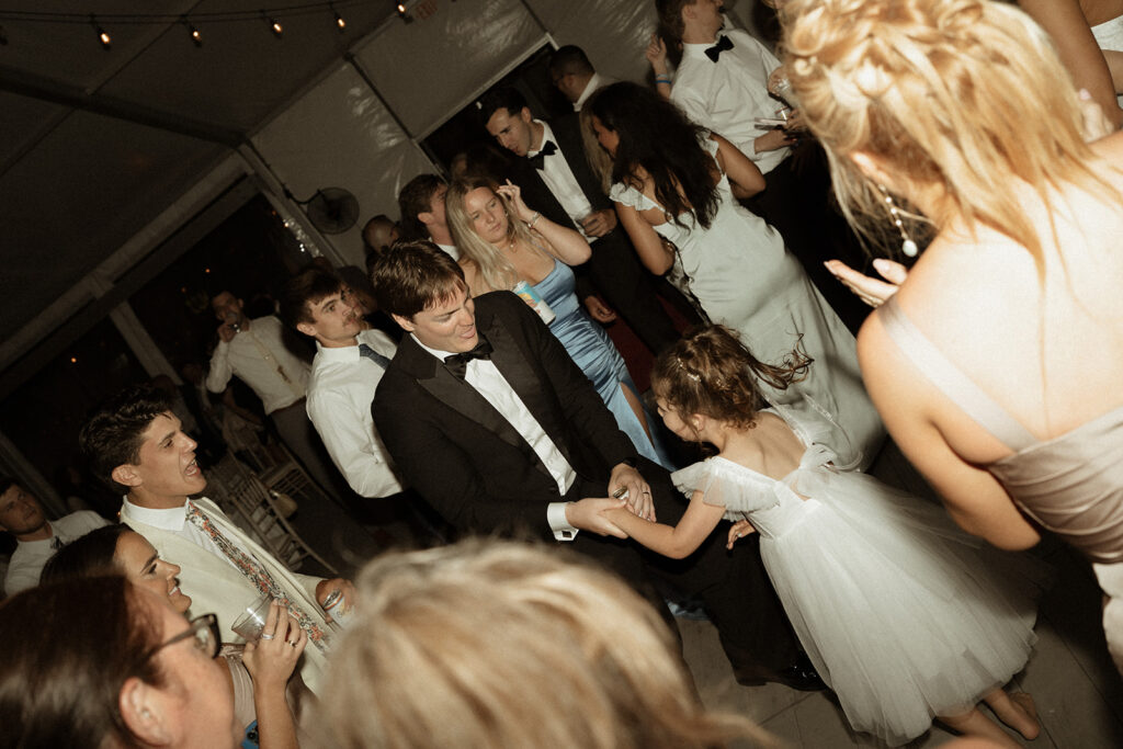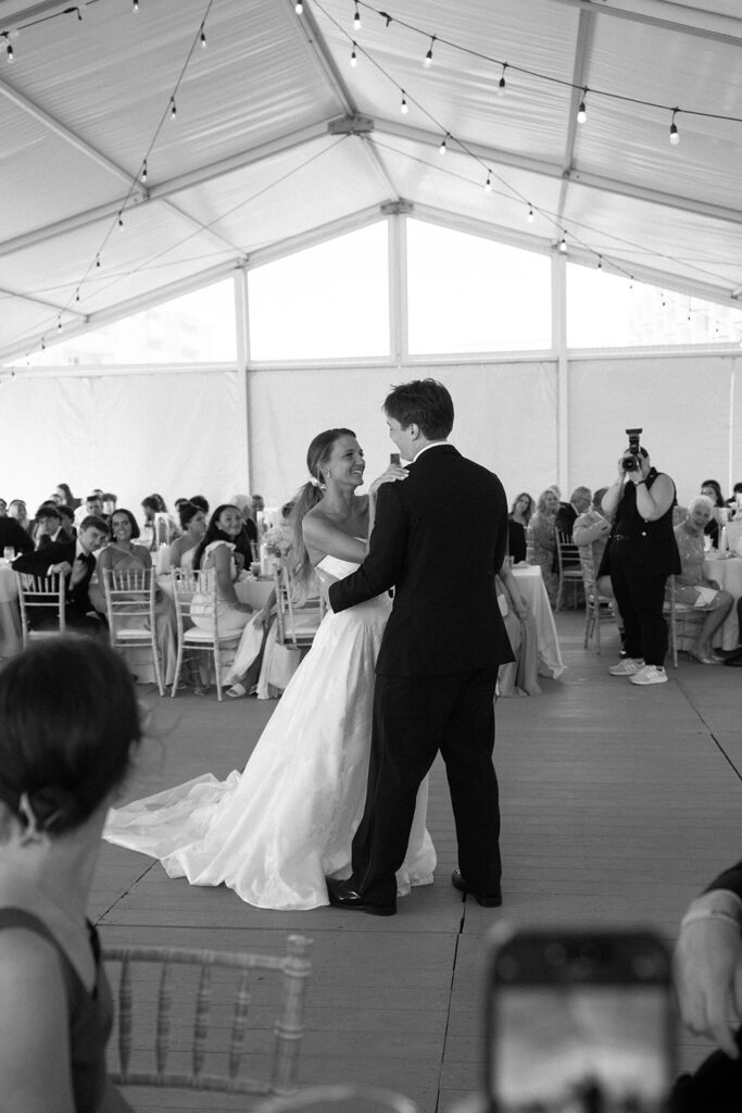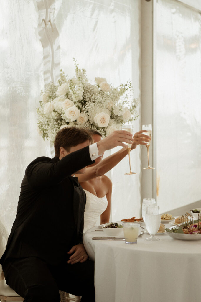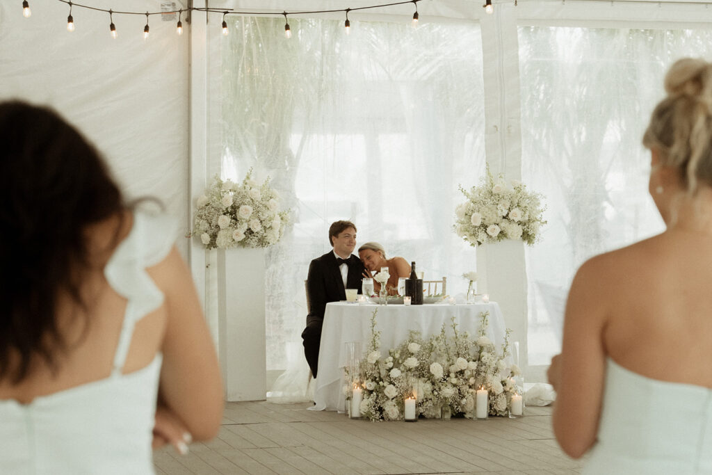 The reception was absolutely stunning and perfectly matched the elevated coastal wedding vibe they were going for. They had all white decor—from table linens to floral arrangements—with candles lining the tables. They had everything you could expect and more: grand entrances, speeches, dancing, cake cutting, and so much fun. They created so many core memories that their families will remember forever.