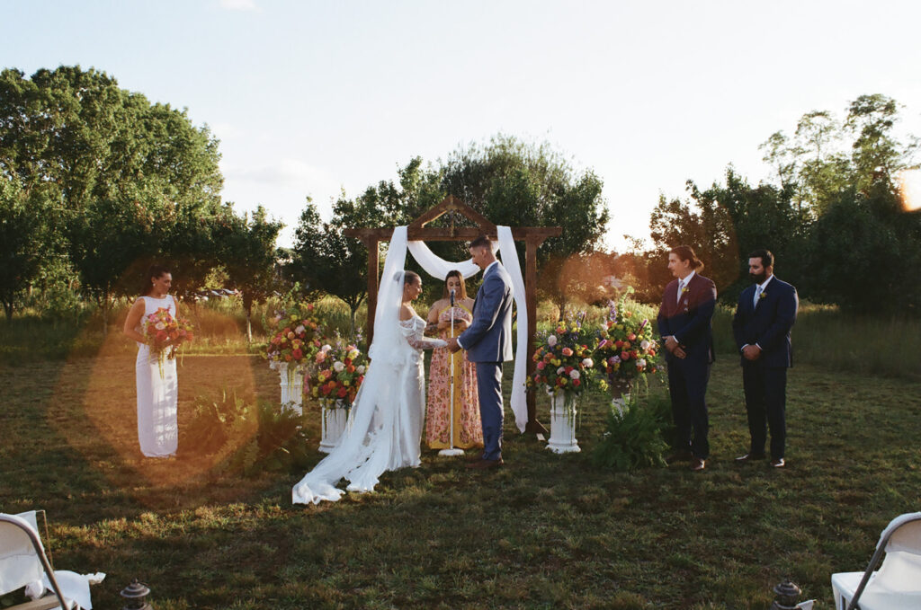 The ceremony took place at the most perfect time of day. It was late afternoon, just before golden hour, and the sun was hitting the altar in the most beautiful way. Some might think it’s cheesy, but I like to think that Mother Nature was illuminating them.
