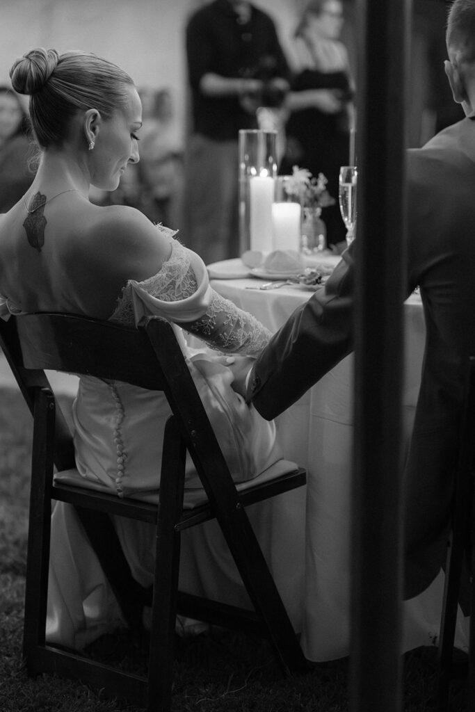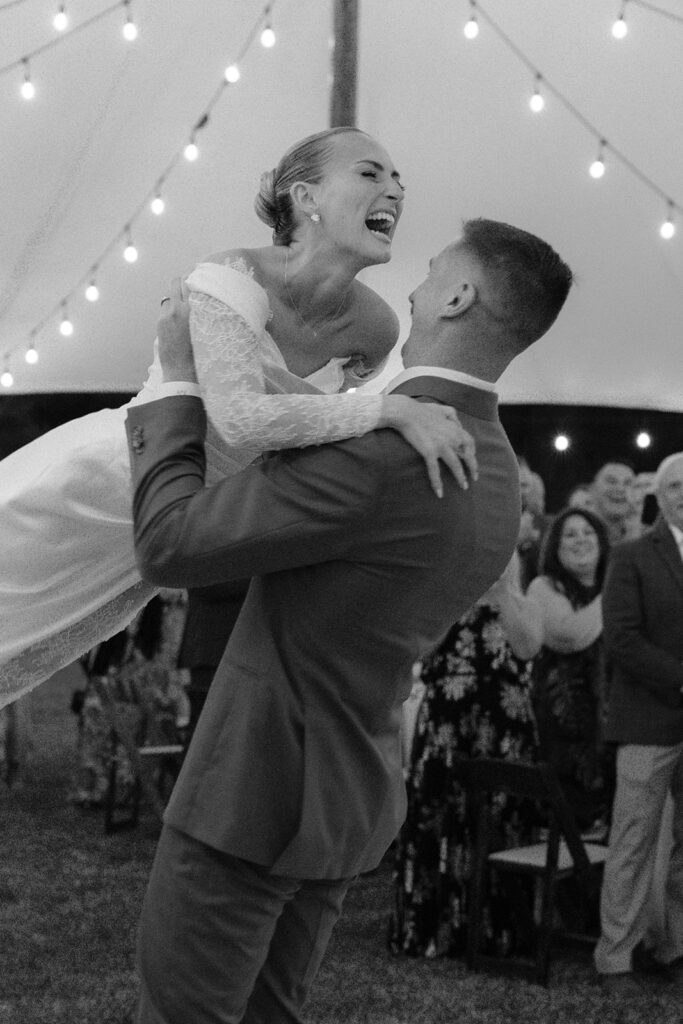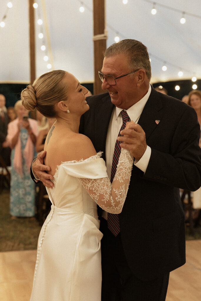 Their reception took place under a gorgeous white tent, with lights lining the ceiling and setting the mood for the night. They shared their first dances, heartfelt toasts and speeches, and spent the rest of the evening on the dance floor. Everyone was such a blast to be around, and the energy throughout the reception was so vibrant.