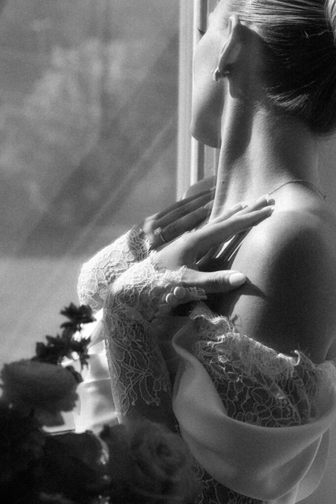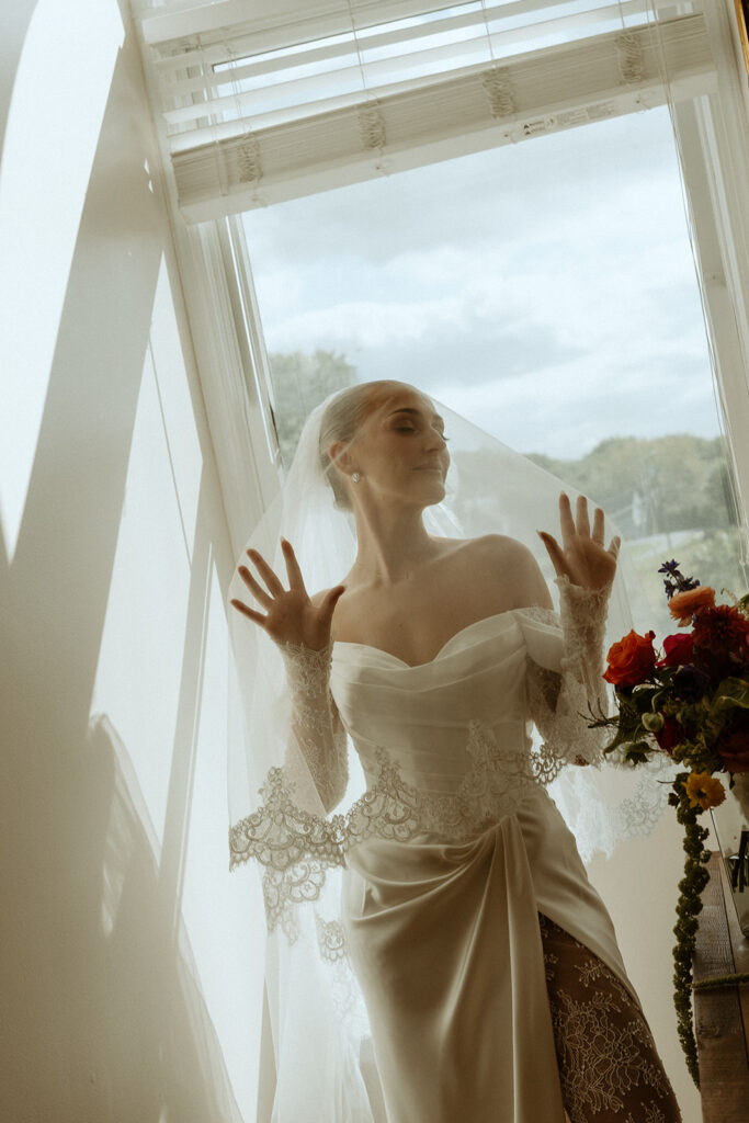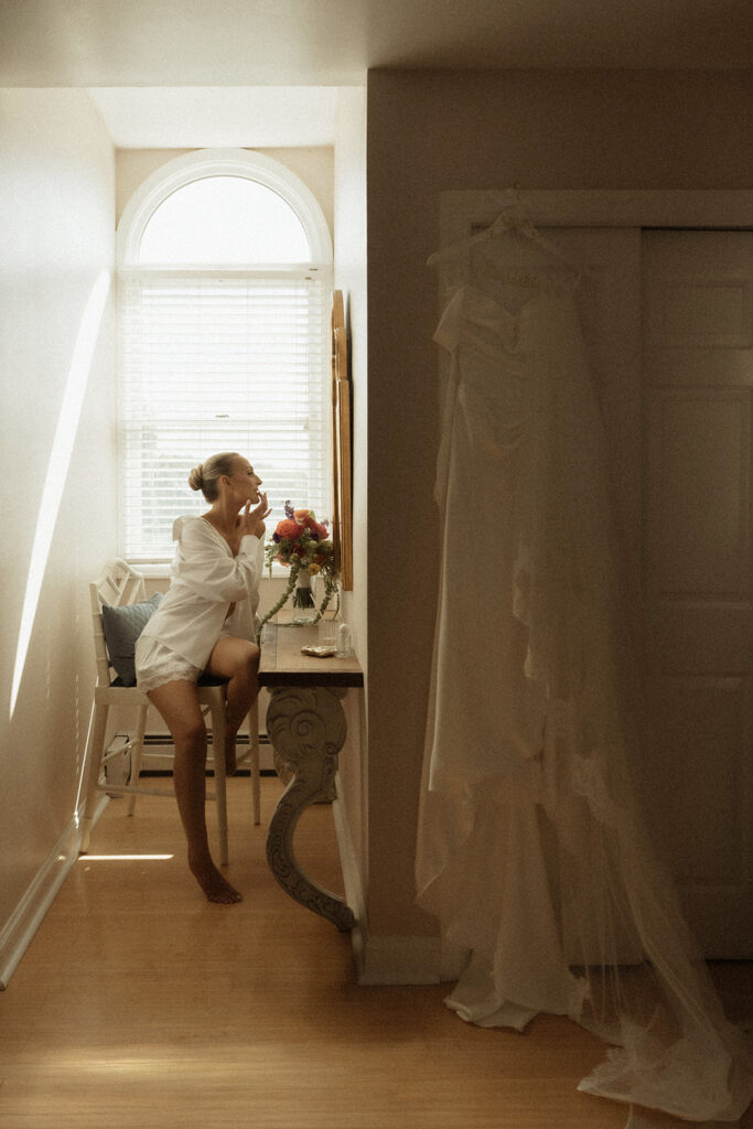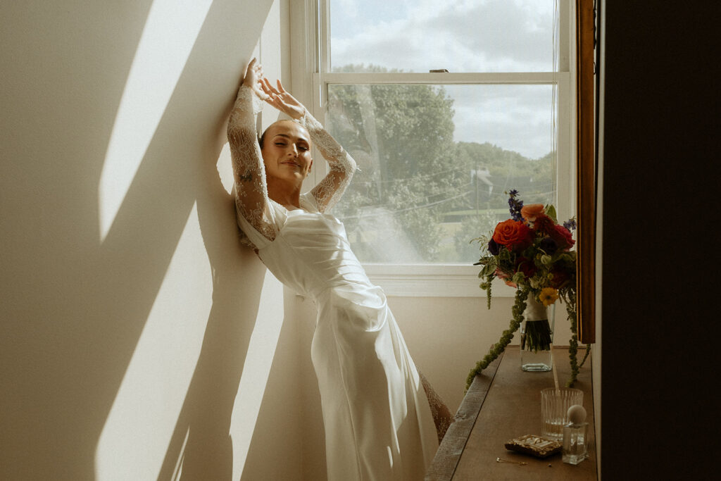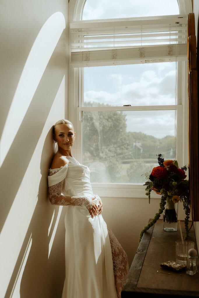 And speaking of dresses, Baillie was such a gorgeous bride, and I was absolutely obsessed with her dress. We captured some portraits of her fully ready by one of the windows, and the light was shining through just right.