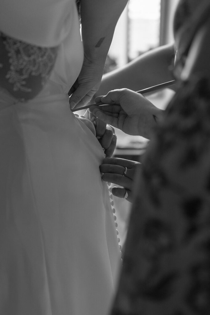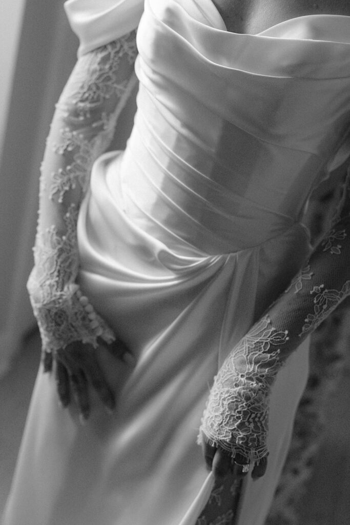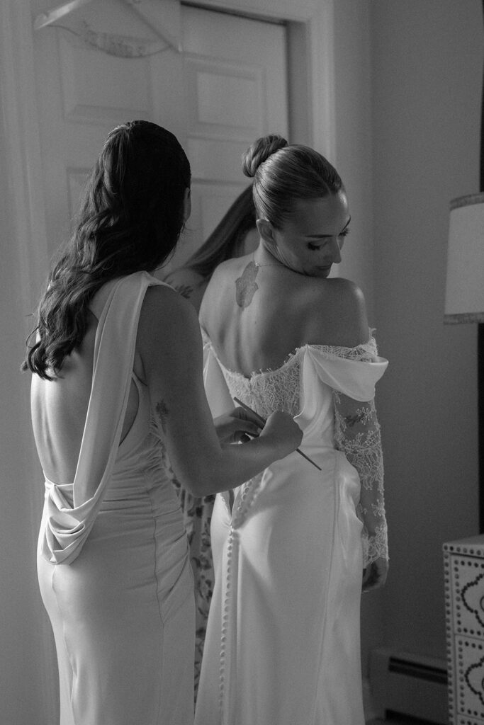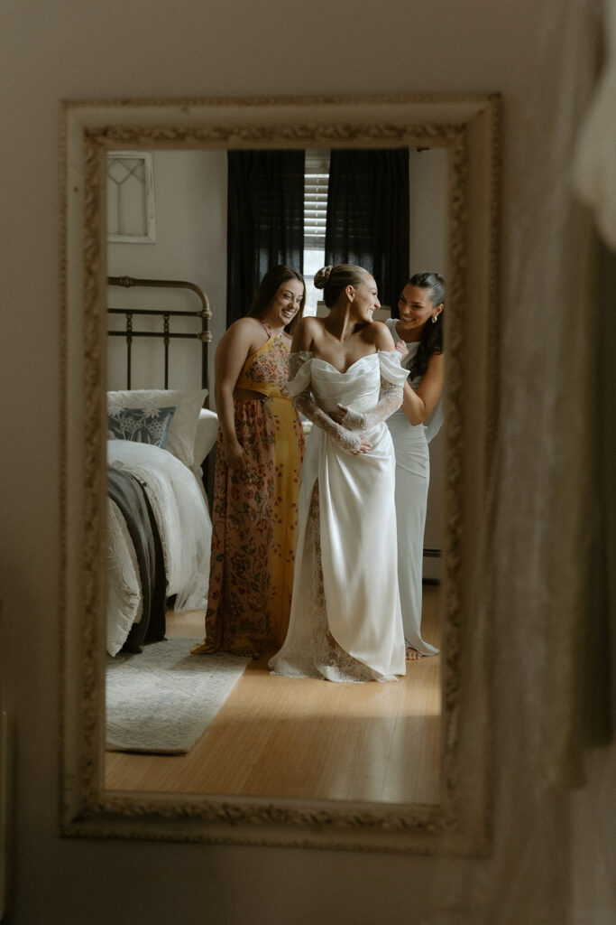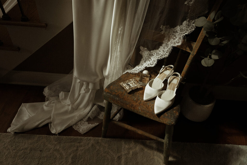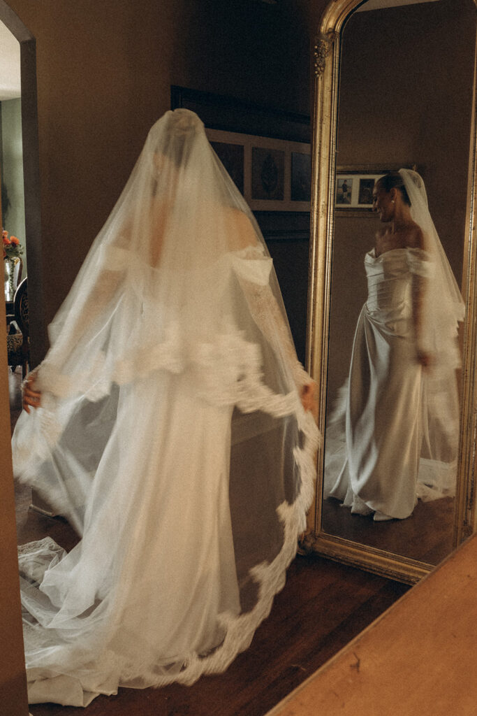 And speaking of dresses, Baillie was such a gorgeous bride, and I was absolutely obsessed with her dress. We captured some portraits of her fully ready by one of the windows, and the light was shining through just right.